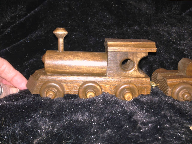 My grandparents had a wooden train with their names.  Unfortunately Granny died 5 years ago, and Grandaddy died 4 years ago (a year almost to the hour later).  And things disappeared... including that train.  I missed it terribly, and found someone who would make me a new one!!!